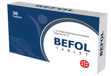 Befol contains 5-methyltetrahydrofolic acid which is ready to use form of folic acid for body and has a high bioavailability.